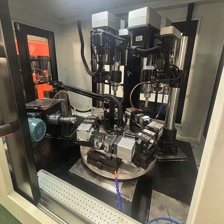 توزیع سر برق: سر افقی برای حفاری و فرز انتهایی، یک واحد دوک حفاری عمودی، دو واحد دوک عمودی ضربه زدن، میز گردان اتوماتیک پنج ایستگاه، یک پایه. یک مجموعه از سیستم مدار، پنج مجموعه از وسایل، و یک مجموعه از محافظ ورق فلزی کاملا محصور شده است.